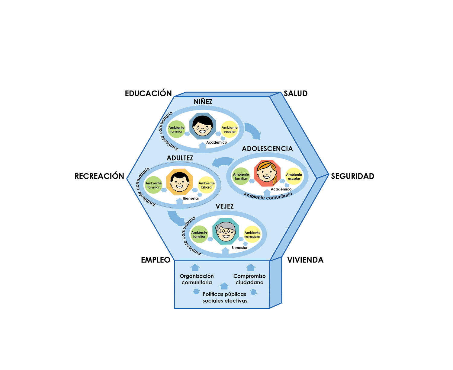 Es un organizador conceptual cuyo eje es la persona, representada mediante 4 Modelos Octogonales: infancia y niñez, adolescencia, adultez y vejez, proceso por el que cada persona avanza a su ritmo y con su estilo, en función de la interacción entre sus condiciones biológicas, diversidad personal y la calidad de los entornos que lo rodean e impactan su desarrollo, desde el contexto más cercano, el familiar, hasta el más lejano, la calidad de implementación de las políticas públicas en su localidad. En esta web incorporamos la estructura 2025 de los 5 modelos que conforman la Visión MOIDI, con ajustes producto del estudio del validación conceptual 2023 y 2024 cuyo análisis esta en curso.